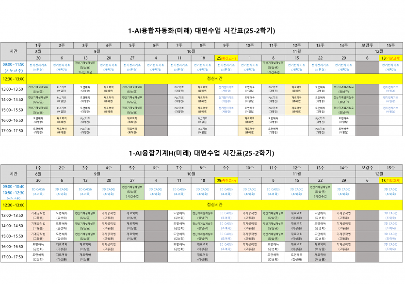 2-AI융합기계H(미래) - 오전 : 연서관 134호 / 오후 : 연서관 222호