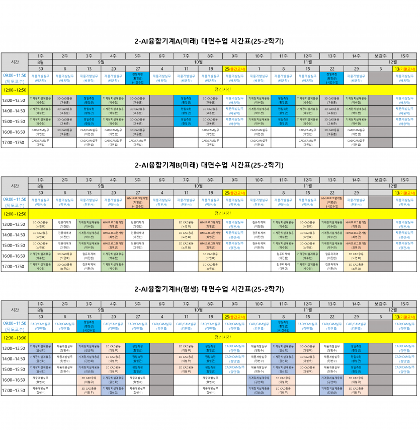 안녕하십니까 AI융합기계계열에서 안내드립니다.